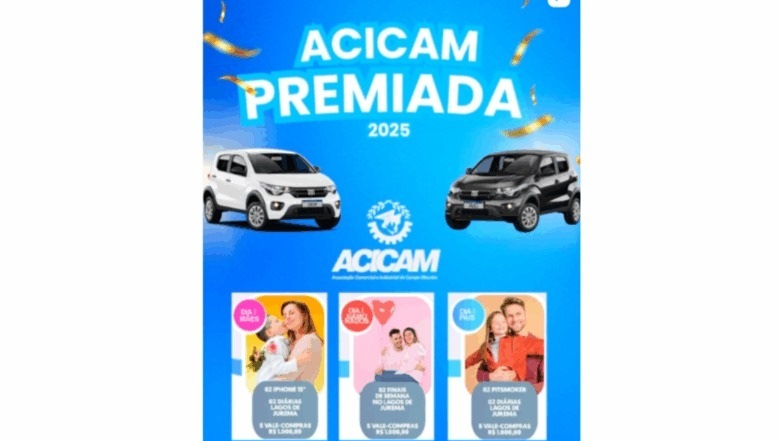 A promoção da Associação Comercial e Industrial de Campo Mourão (Acicam) teve a participação de 227 empresas. No Dia das Mães, a campanha sorteou dois iphones, duas diárias no resort Águas de Jurema (com direito a acompanhante) e cinco vale compras de R$ 1 mil cada. Já no Dia dos Namorados foram sorteados dois finais de semana no resort Lagos de Jurema e cinco vale compras de R$ 1 mil. Mais nove prêmios foram sorteados no Dia dos Pais: duas churrasqueiras móveis (com defumador), duas diárias no resort Lagos de Jurema e cinco vale compras de R$ 1 mil.