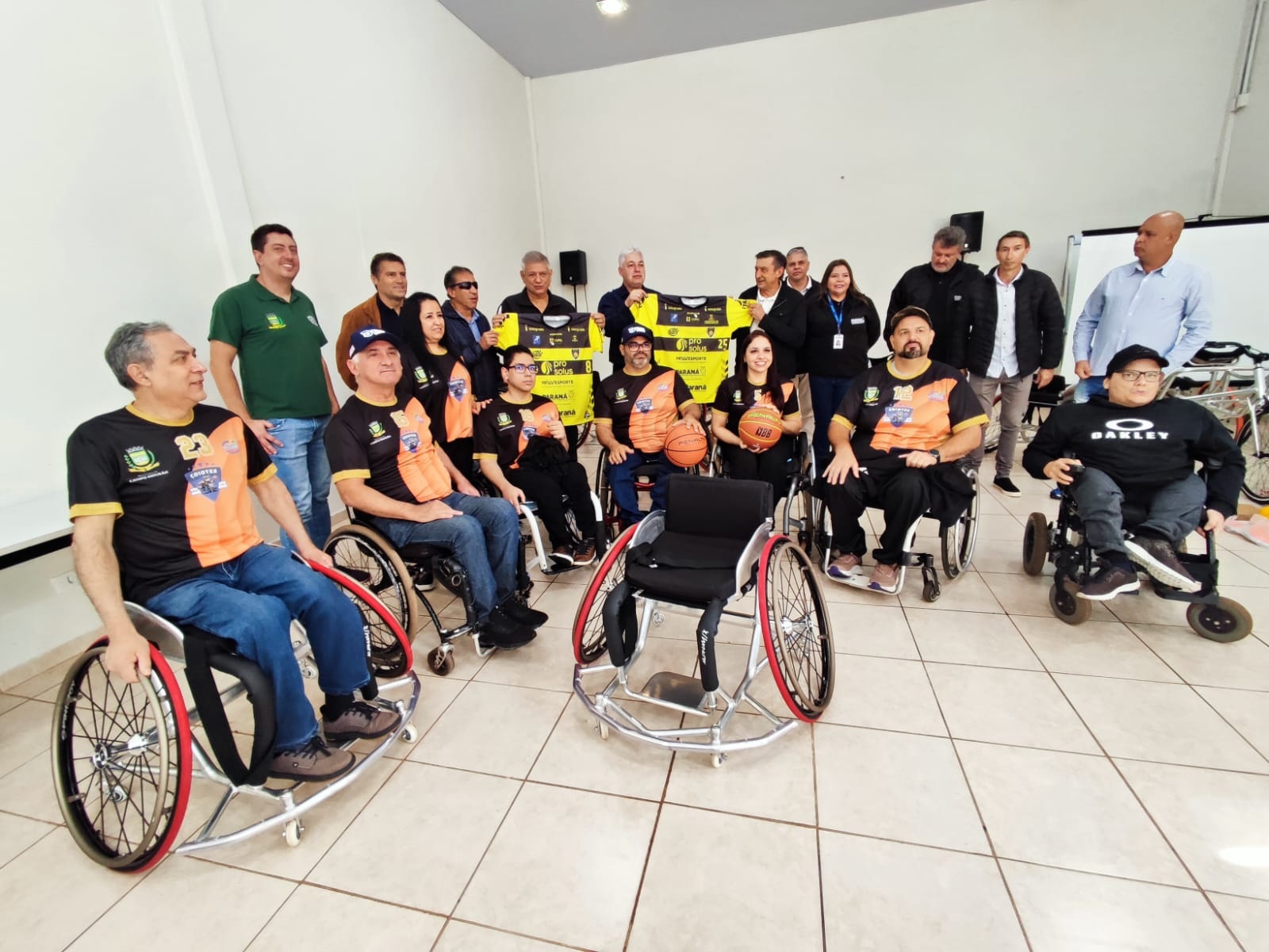 A prefeitura de Campo Mourão fez a entrega, na manhã desta segunda-feira (14), de cadeiras de rodas e kits de materiais esportivos para as modalidades de Atletismo e basquete do Paradesporto. Os materiais foram repassados pela Secretaria Estadual do Esporte. A cerimônia contou com a presença do prefeito Douglas Fabrício, do secretário estadual do Esporte, Hélio Wirbiski, do diretor geral da Fundação de Esportes, Bina Teixeira e atletas do paradesporto.