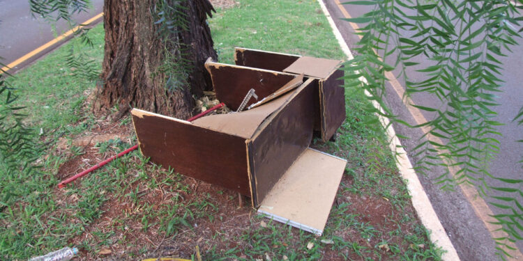 Infelizmente, é muito comum em Campo Mourão, o descarte de móveis velhos, – para aqueles que acham que lixo se joga em qualquer local – nos canteiros da cidade. Esta foto é da Avenida Jorge Walter. Isso é uma Tristeza, viu!