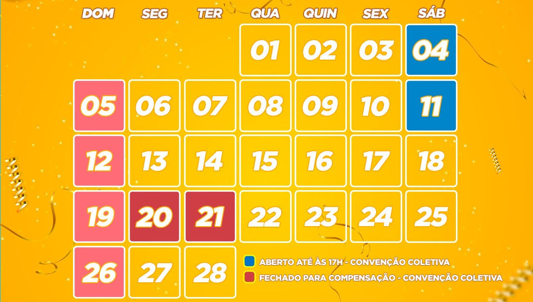 Neste sábado, o comércio lojista de Campo Mourão funcionará em horário normal. As lojas voltam a atender em horário normal na manhã da próxima quarta-feira.