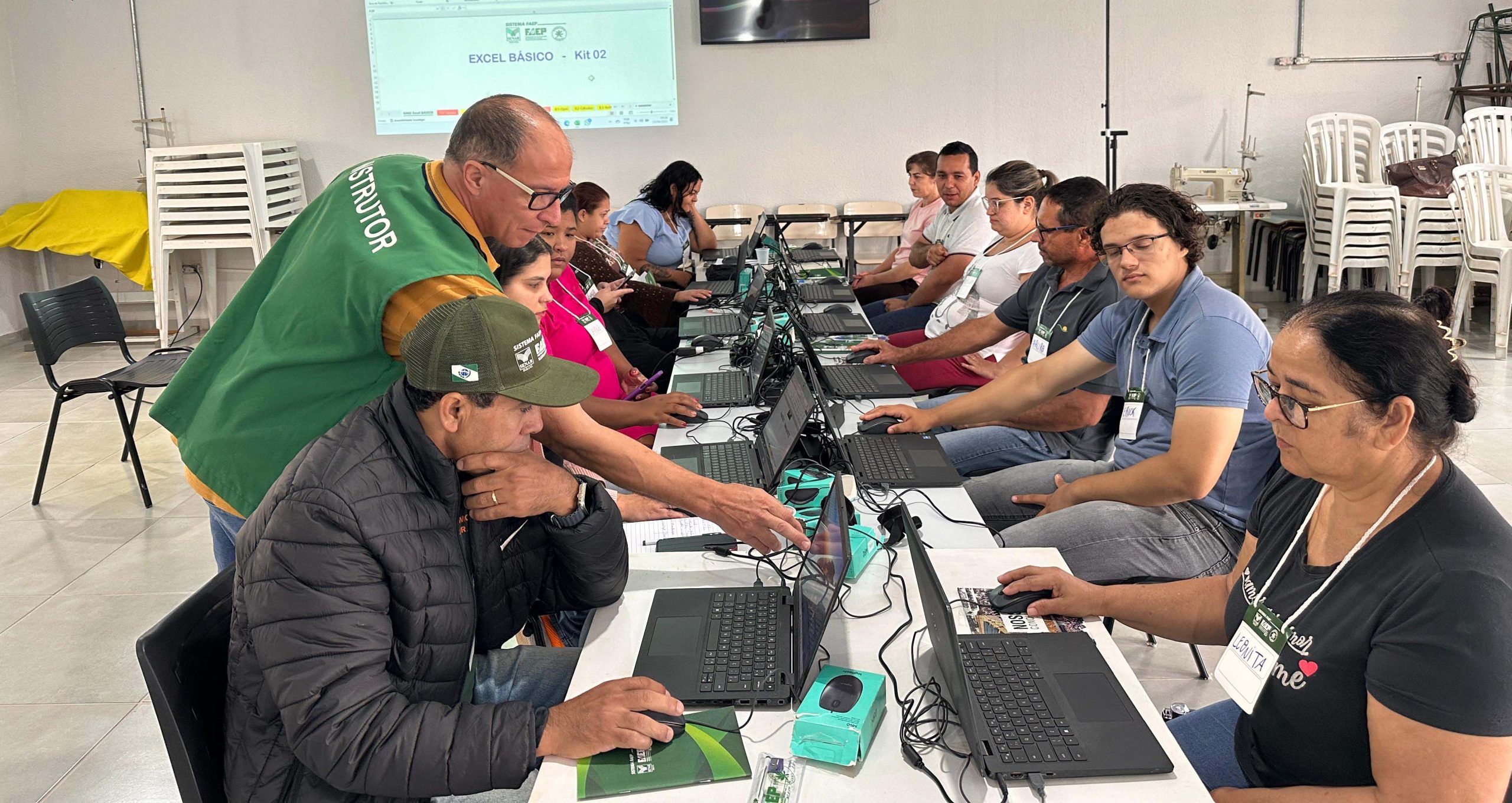 Ministrado pelo instrutor do SENAR, Adriano Regiani Pereira, o curso conta com a participação de 12 alunos e tem como foco o desenvolvimento de competências em planilhas eletrônicas, abordando desde os fundamentos do Excel até a criação de gráficos, formatação condicional, fórmulas e funções básicas.