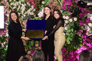 Ao final do depoimento, a empresária recebeu uma placa em homenagem a sua destacada atuação como empreendedora e dirigente da Acicam (foto), entregue por Aline Isolani (presidente da Acicam Mulher), Rose Soares (presidente da Cacercopar – Coordenadoria das Associações Comerciais e Empresariais da Região Centro Ocidental do Paraná)