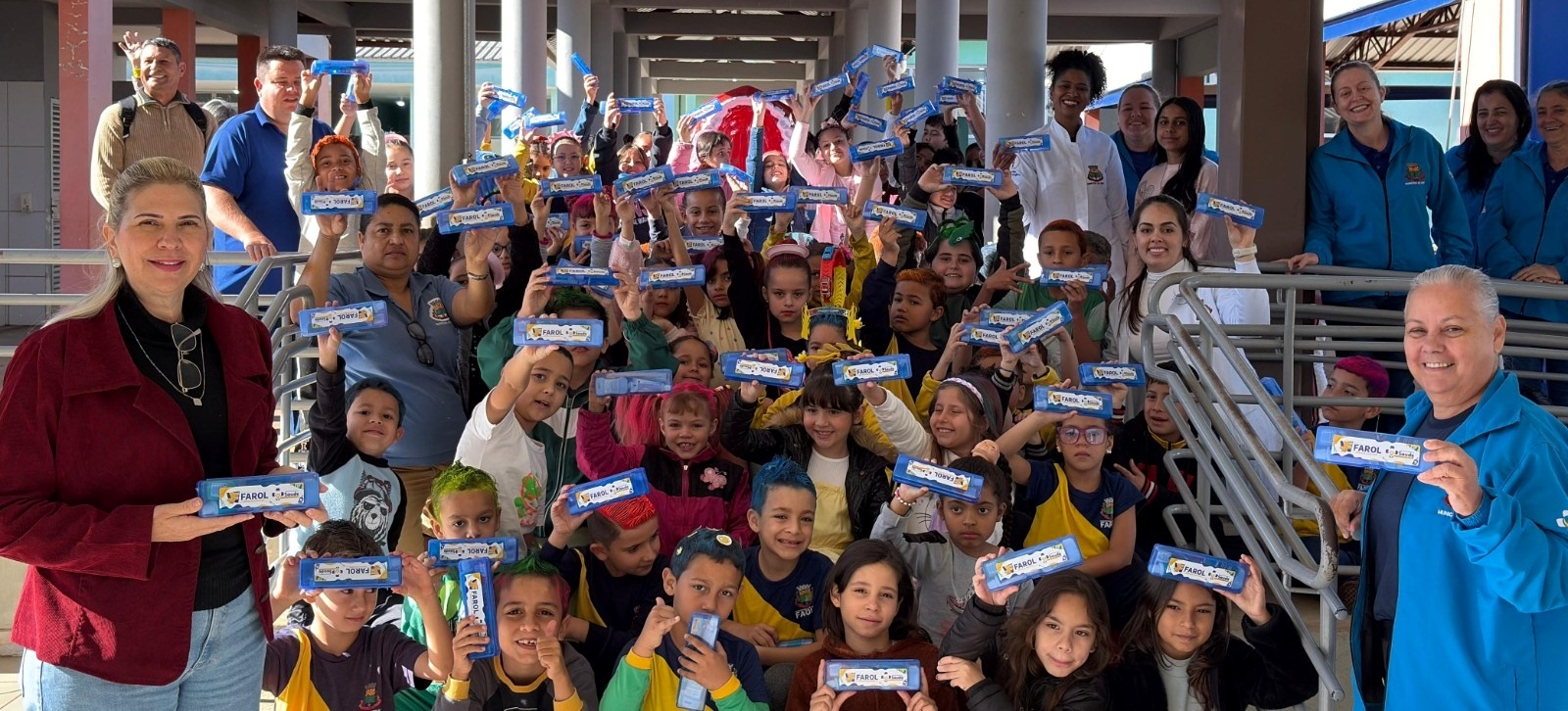 Em um amplo trabalho de atenção à saúde e qualidade de vida, o Município de Farol viabiliza kits bucais compostos por escova, fio dental, enxaguante bucal e estojo para todos os alunos da Rede Municipal de Educação. O programa Boca Saudável, Vida Saudável é promovido pelas secretarias municipais de Saúde e Educação, visando orientação e incentivo quando aos cuidados com a higiene bucal na infância para dentes saudáveis na fase adulta.