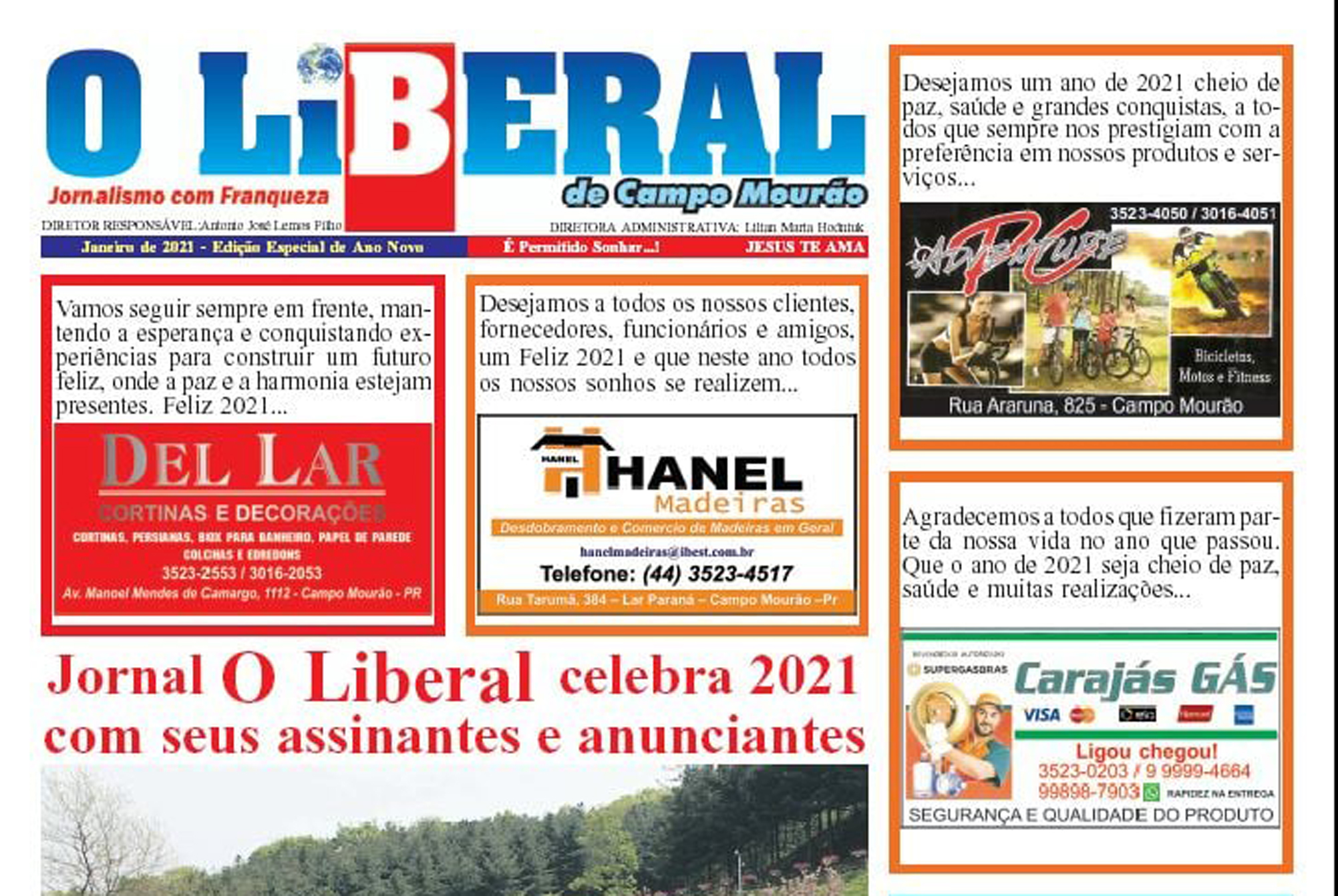 Desde a nossa primeira edição, quando comemorávamos o cinquentenário de nossa cidade, firmamos um compromisso sério, ético e contundente, de noticiarmos de forma diferente. A informação pode ser desastrosa, assustadora, feia mesmo, porém, aqui em nossas páginas ela ganha graça em nossa redação e beleza em nossa diagramação. Buscamos neste curto espaço de existência, nunca sermos os portadores de desgraças alheias e aqui, pelo menos aqui no Jornal O LIBERAL, a vida é um pouco mais bonita, podemos afirmar, que aqui a vida é menos complicada.