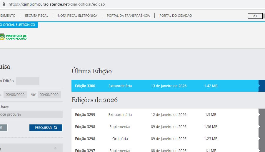 O órgão oficial do município está disponível em: https://campomourao.atende.net/diariooficial/edicao.