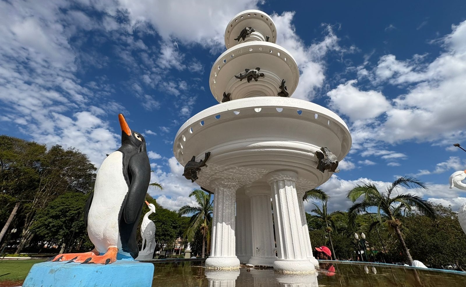 Tombado como patrimônio histórico municipal desde 1993, o Chafariz da Praça Getúlio Vargas é um dos marcos mais emblemáticos de Campo Mourão — e, possivelmente, o cenário mais fotografado da história da cidade. Desde ontem, quinta-feira, o monumento ganhou de volta um pedaço de sua memória: os dois pinguins ornamentais que haviam sido retirados durante a reforma de 2004.
