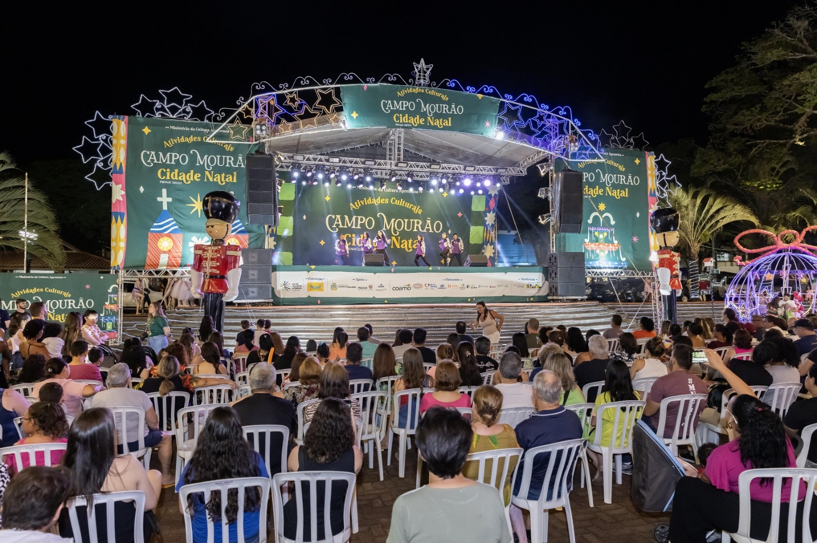 As milhares de pessoas que na noite do próximo sábado (dia 23) comparecerão a Praça São José para assistir a abertura oficial da programação do projeto “Atividades Culturais Campo Mourão Cidade Natal 24” terão a disposição uma ampla estrutura de apoio. Assegurar conforto, segurança e momentos de encantamento, alegria e confraternização ao público é o objetivo da Associação Sou Arte, idealizadora e executora do Natal Cultural de Campo Mourão.