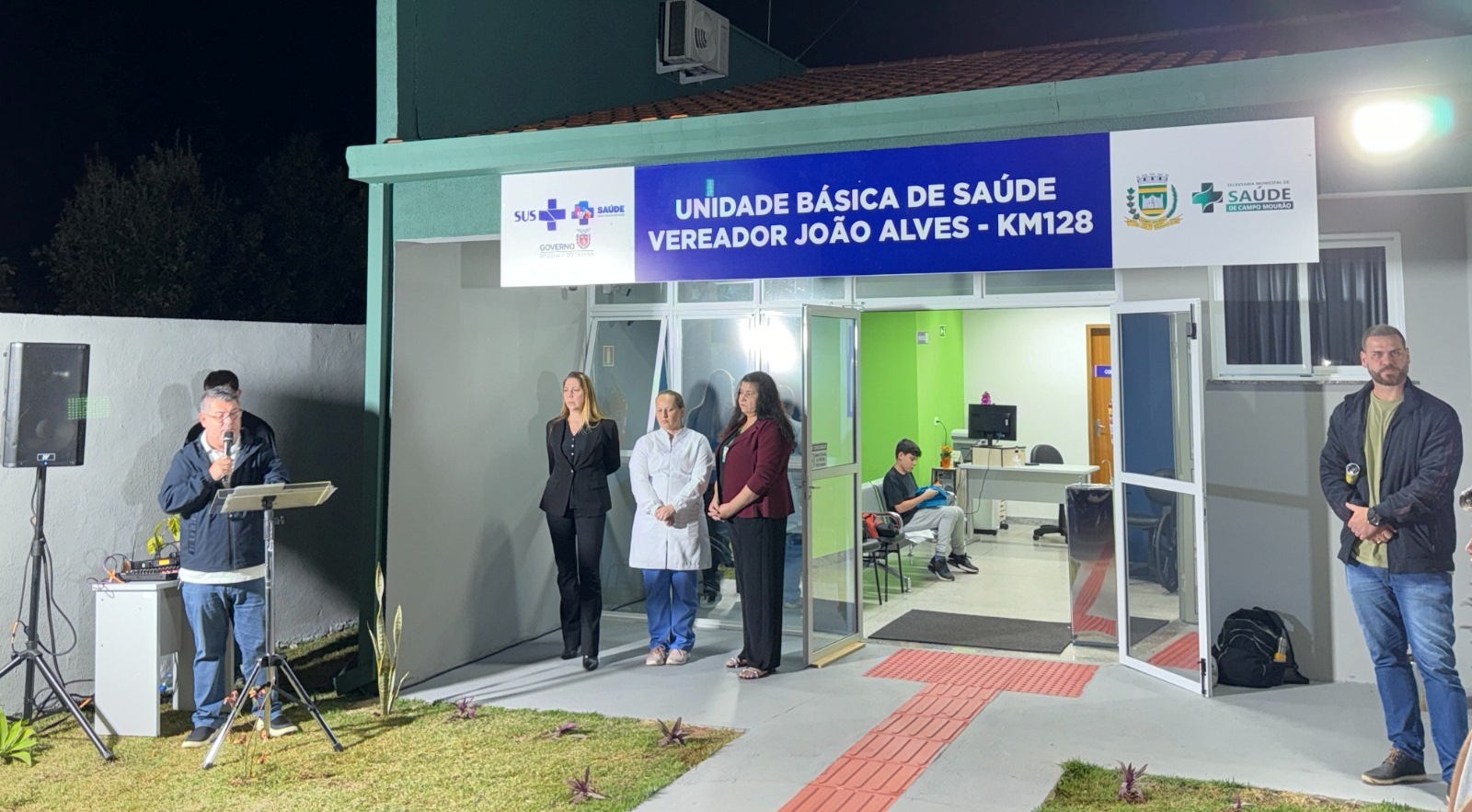 A solenidade de inauguração contou com a presença de diversas lideranças, entre elas o prefeito Douglas Fabrício, a secretária municipal de Saúde, Camila Cravicz Corchak, o presidente da Câmara, vereador Jadir Soares (Pepita), e o ex-prefeito Tauillo Tezelli, que iniciou a obra durante sua última gestão, além dos vereadores Sidnei Jardim, Hélio Gonçalves e Eliane do Café. Também marcaram presença, familiares do homenageado, incluindo a viúva Neide Campregher Alves, que agradeceu emocionada à comunidade pelo reconhecimento.