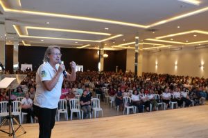 A Secretaria Municipal de Educação reuniu, na manhã desta quinta-feira (27), todos os servidores da Educação do município no salão de eventos Mourão Garden para celebrar o Dia da Educação, já que no mês de outubro é comemorado o Dia do Professor e do servidor público. Além de premiações a escolas melhores classificadas no IDEB e projetos educacionais, também foi realizada uma palestra motivacional com Sirley Batatinha e um stand-up com o humorista Juca Bala.