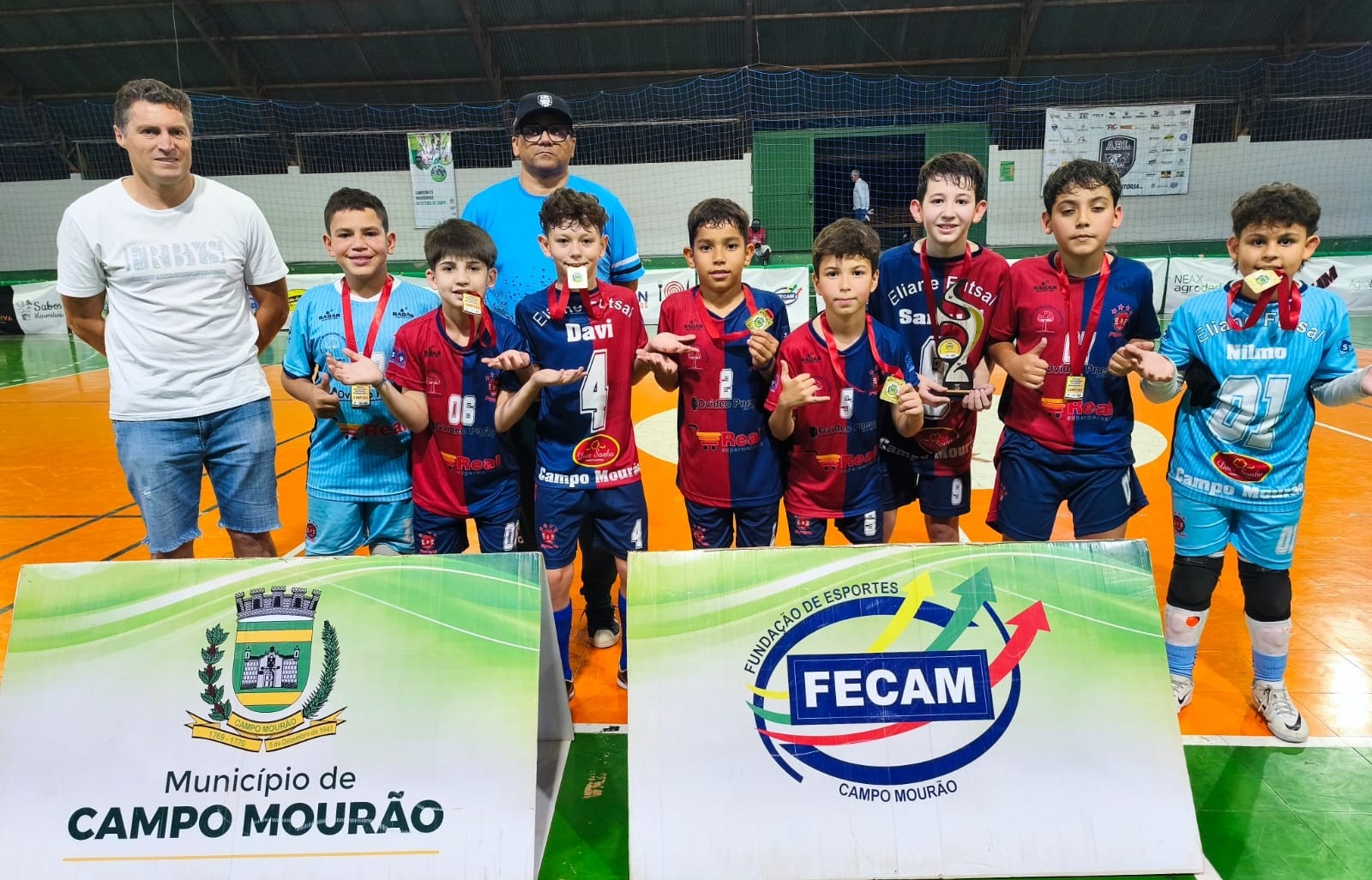 A Prefeitura de Campo Mourão, por meio da Fundação de Esportes (Fecam), realizou o Torneio Mourãoense de Futsal – Menores 2025, competição que movimentou as categorias de base do futsal e contou com a participação de 280 pessoas, entre atletas e dirigentes, distribuídos entre as categorias Sub-7, Sub-9, Sub-11 e Sub-13.